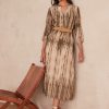 Louise is 1.75m tall and wears a size 36. With the MAELINE dress, the model wears MAX sandals.