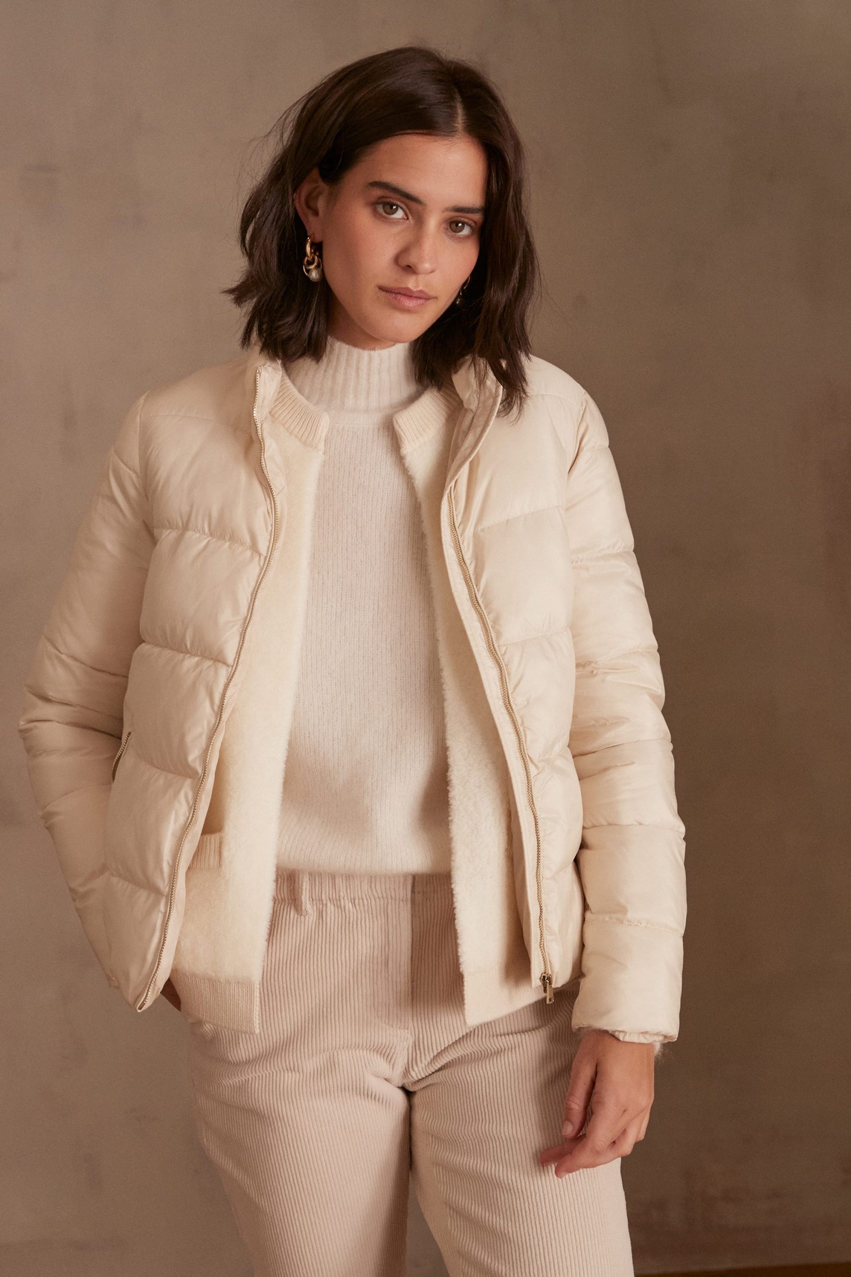 Focus the subtleties of beige by teaming your ALISTER padded jacket with velvet trousers and a polo neck jumper in complementary shades.