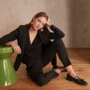 Louise is 1.75m tall and wears a size 36. The model is wearing NAYA waistcoat, REINE jacket and ROSA loafers with the LARA trouser.trousers