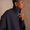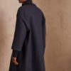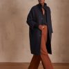 The sustainably-sourced wool will keep you warm and comfortable. This elegant design has a straight shape and timeless navy blue colour, with the knitted ribbed trim and poppers making it feel a little more casual.