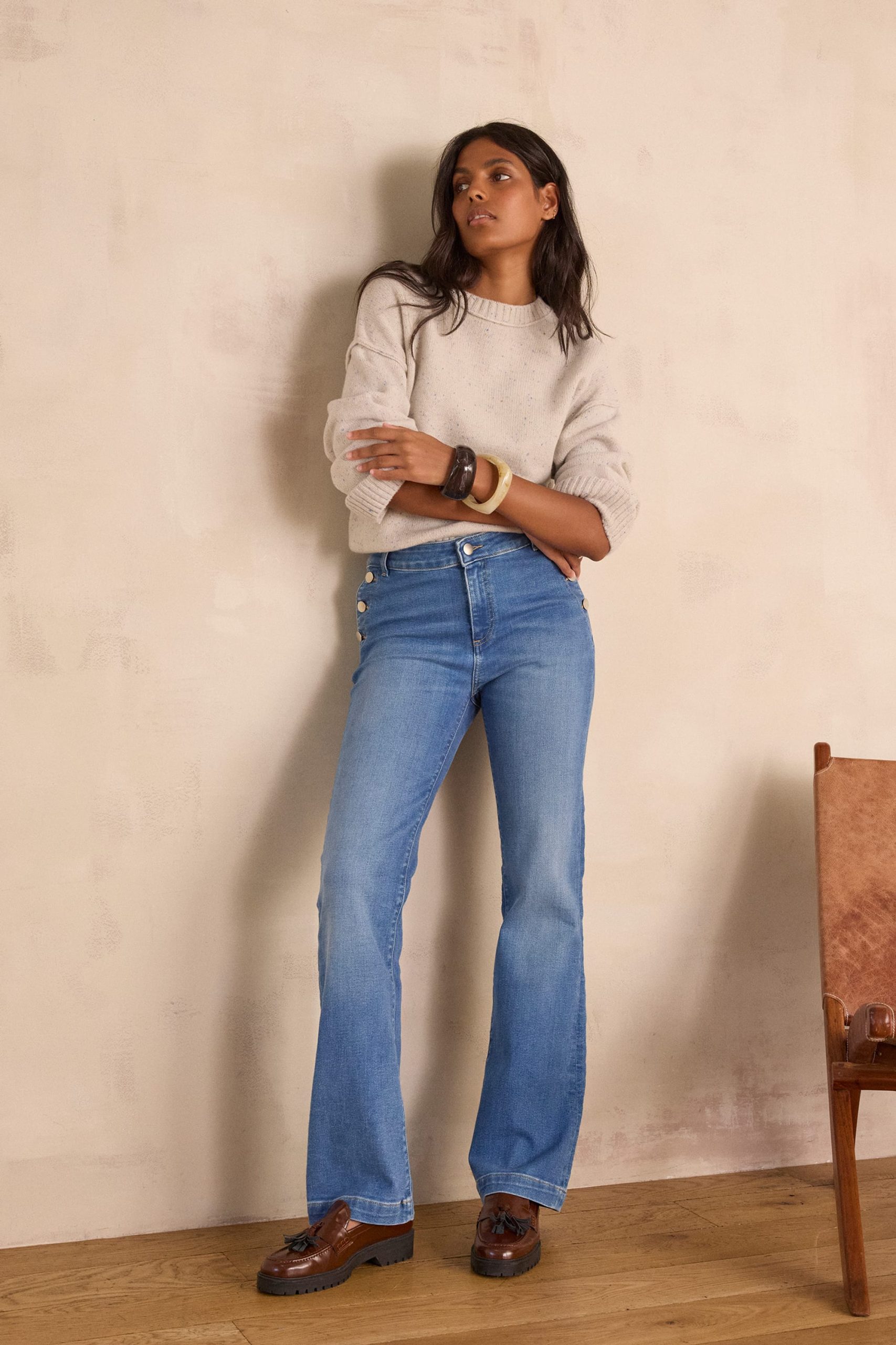 Seventies vibes for the NINON flared jeans with a sailor trousers look.