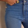 Made of denim, 50% organic cotton, it features a flare cut that beautifully elongates the silhouette, lovely metal buttons on the pockets in the style of sailor trousers, a high waist and a delicate wash. For a more retro look, go for this ultra-trendy model.