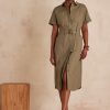 Maison 123 Women’s Rama Mid-length Cotton Dress | Khaki