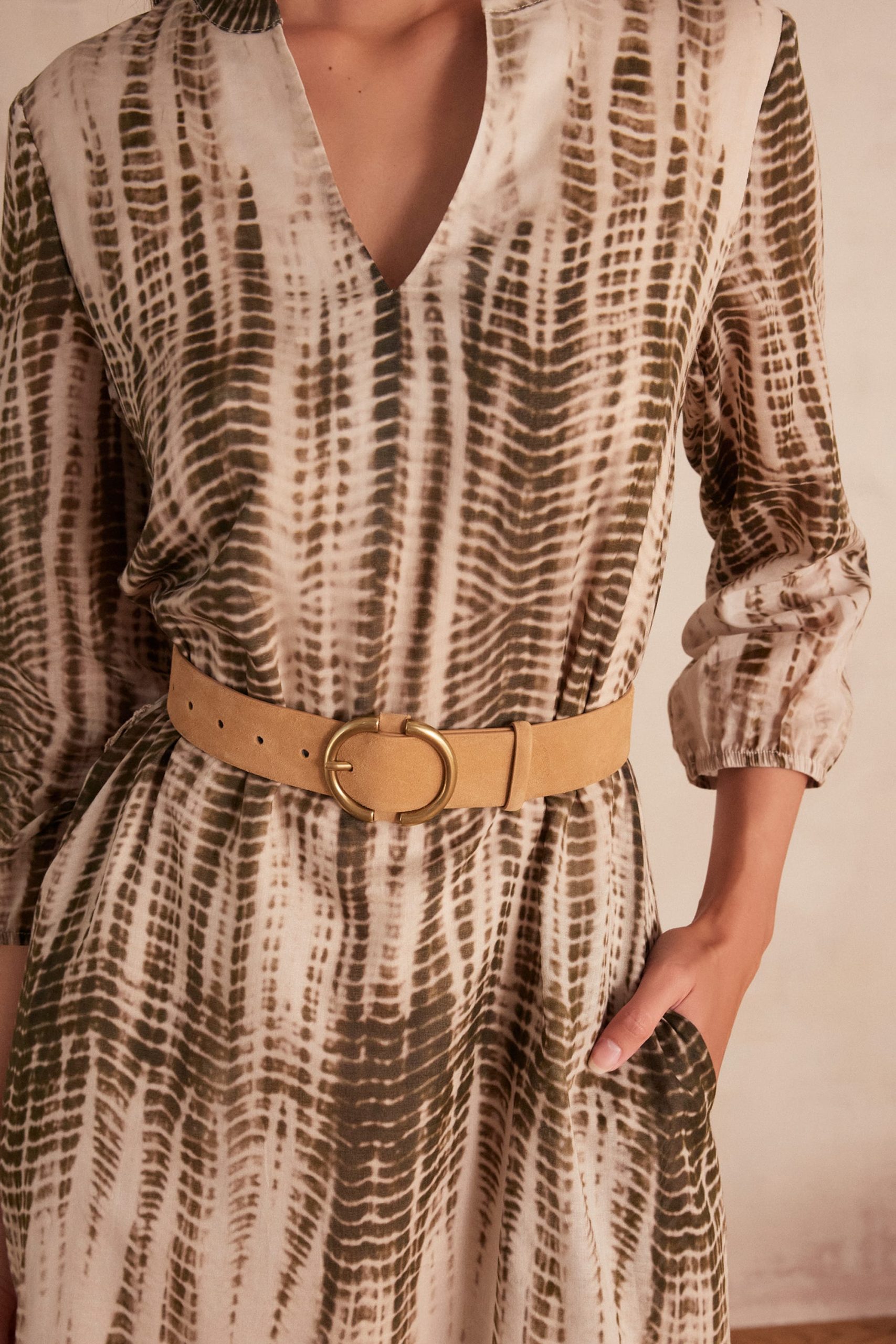 Tia is 1m78 tall and wears a size 34. With the RIADE dress, the model wears MARINA espadrilles.