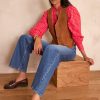These wide-leg jeans elongate the silhouette thanks to their wide legs and fitted high waist. This shape is ideal for highlighting your waist. We love its faded blue colour. This model is a true iconic piece.