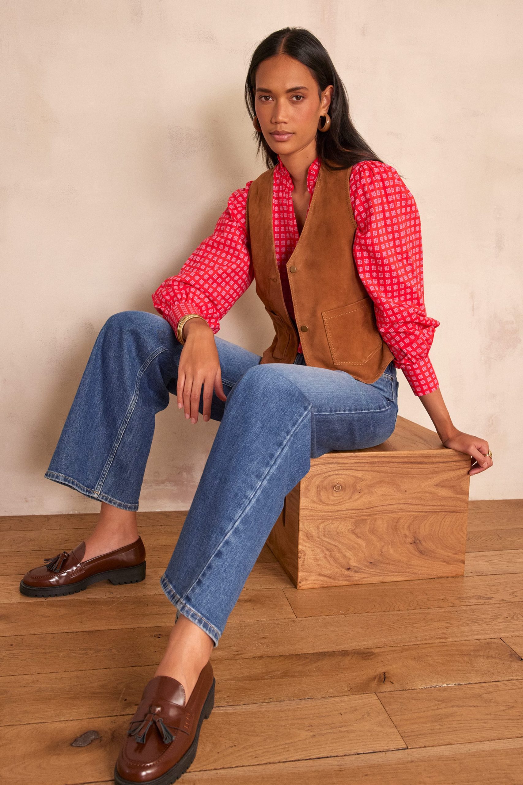 – 100% cotton- Shirt collar- Long sleeves- Button-up front closure- Classic cut- Piece made in Tunisia.Tia is 1.78m tall and wears a size 34. With the SANDY jeans, the model wears the BETH blouse, the PERLIN cardigan and the VALENTIN loafers.