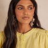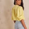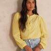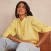 Opt for a tone-on-tone look by pairing this blouse with a yellow cardigan, all accompanied by light blue jeans for a bright and fresh touch.